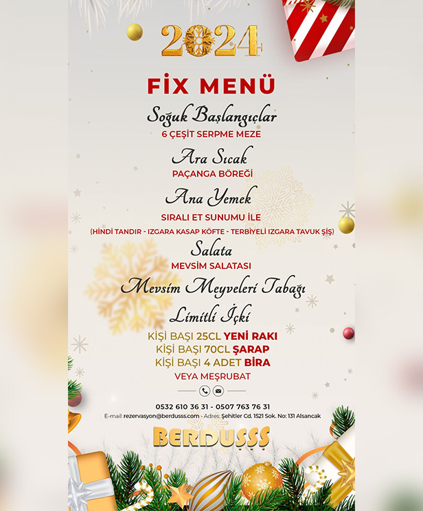 Yeni yılın ilk anlarını coşku dolu bir şekilde karşılamak için sabırsızlanıyoruz. Berduşşş Meyhane, İpek Demir ve siz değerli konuklarımızla yeni yıla harika bir başlangıç yapmaya hazır!
