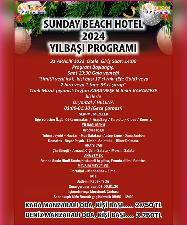 Sunday Beach Hotel Kuşadası Yılbaşı Program Akışı 2024